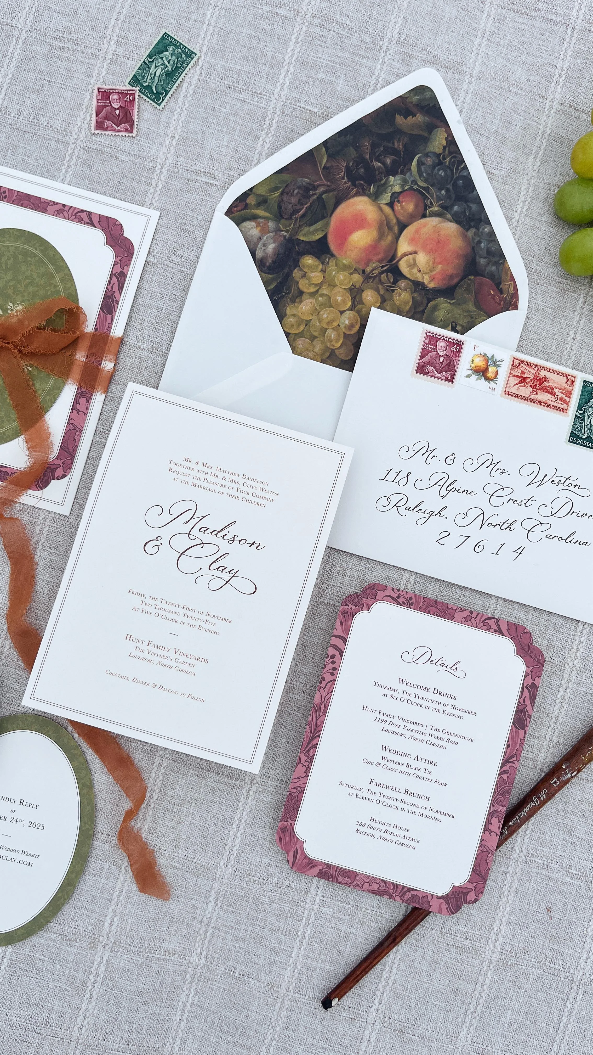 We believe wedding stationery should not only be gorgeous and unique to each couple but also serve you and your guests well. Through thoughtful details and timeless designs, our goal is to craft pieces that transcend the ordinary and usher your guests into an experience they won’t soon forget.